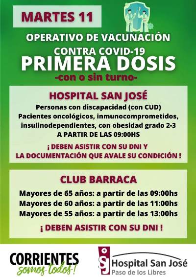 ✅HOSPITAL SAN JOSÉ: A partir de las 09:00hs podrán presentarse las personas con discapacidad con CUD vigente y los pacientes oncológicos, inmunocomprometidos, insulinodependientes y con obesidad grado 2-3 que tengan entre 18 Y 54 años
