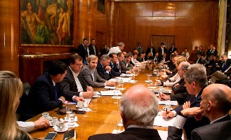 Además de Aranguren y Frigerio estuvieron presentes los gobernadores de Tierra del Fuego, Rosana Bertone; de Río Negro, Alberto Weretilneck; de Chubut, Mario Das Neves, de Neuquén, Omar Gutiérrez; de La Pampa, Carlos Verna; de San Juan, Sergio Uñac; de La Rioja, Sergio Casas; de Santa Fe, Miguel Lisfchitz; de Entre Ríos, Gustavo Bordet; de Chaco, Oscar Peppo; de Formosa, Gildo Insfrán; de Catamarca, Lucía Corpacci. También se encontraron los vicegobernadores de Buenos Aires, Daniel Salvador, y de Santa Cruz, Pablo González, y ministros del área de energía de las restantes nueve provincias. Durante la reunión, los funcionarios nacionales informaron además otras medidas como la aplicación de topes para los incrementos en la tarifa del gas para los usuarios de las provincias de la Patagonia; así como también la ampliación de facilidades de pago de las facturas de este servicio para industrias y pequeñas y medianas empresas.